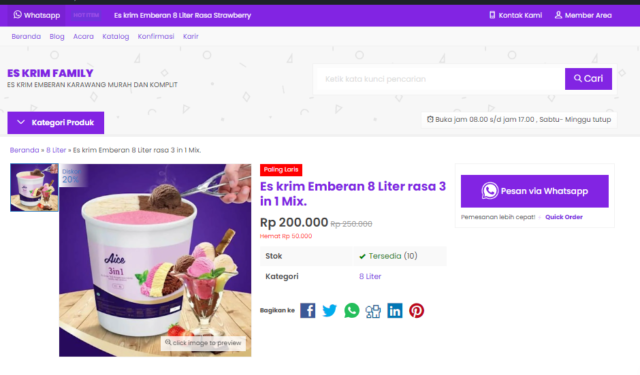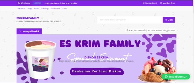 Es Krim Family adalah toko es krim yang menjual beragam eskrim dan keperluan es krim. Menjelaskan produk id situs dan pembelian langsung melalui web atau mengearah ke whatsapp.
